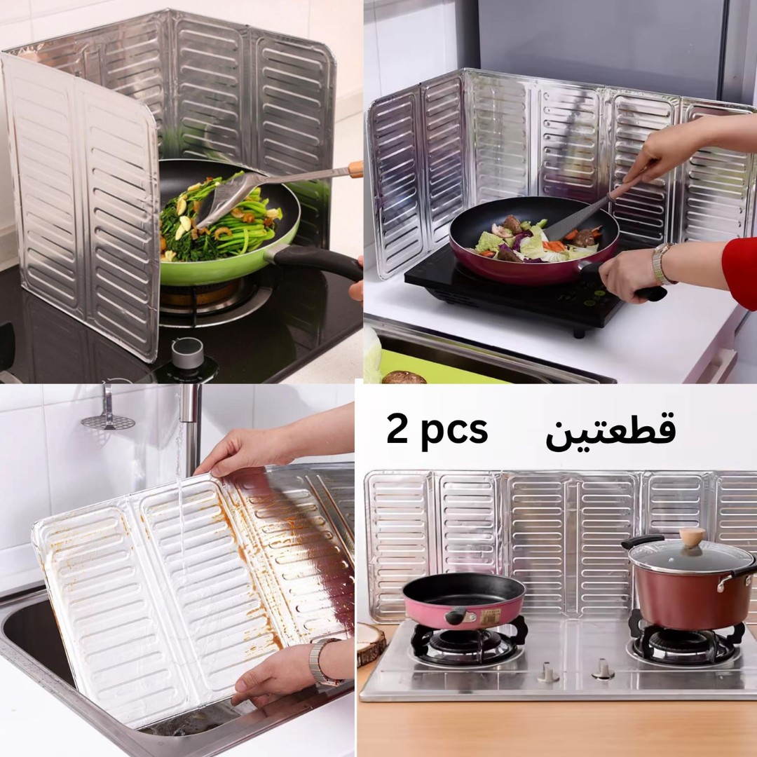 واقي رذاذ الطهي عدد 2 حاجز الومينيوم مصمم لمنع تناثر الزيت أو الطعام أثناء القلي أو الطهي على الموقد.
