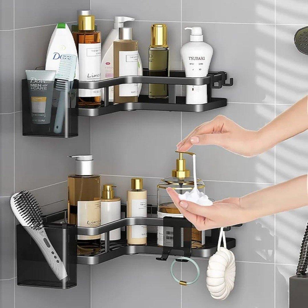 ✅ يستخدم هذه الرفوف لتخزين مستلزمات الاستحمام مثل الشامبو، الصابون، وبلسم الشعر، مما يساعد على الحفاظ على ترتيب الحمام.