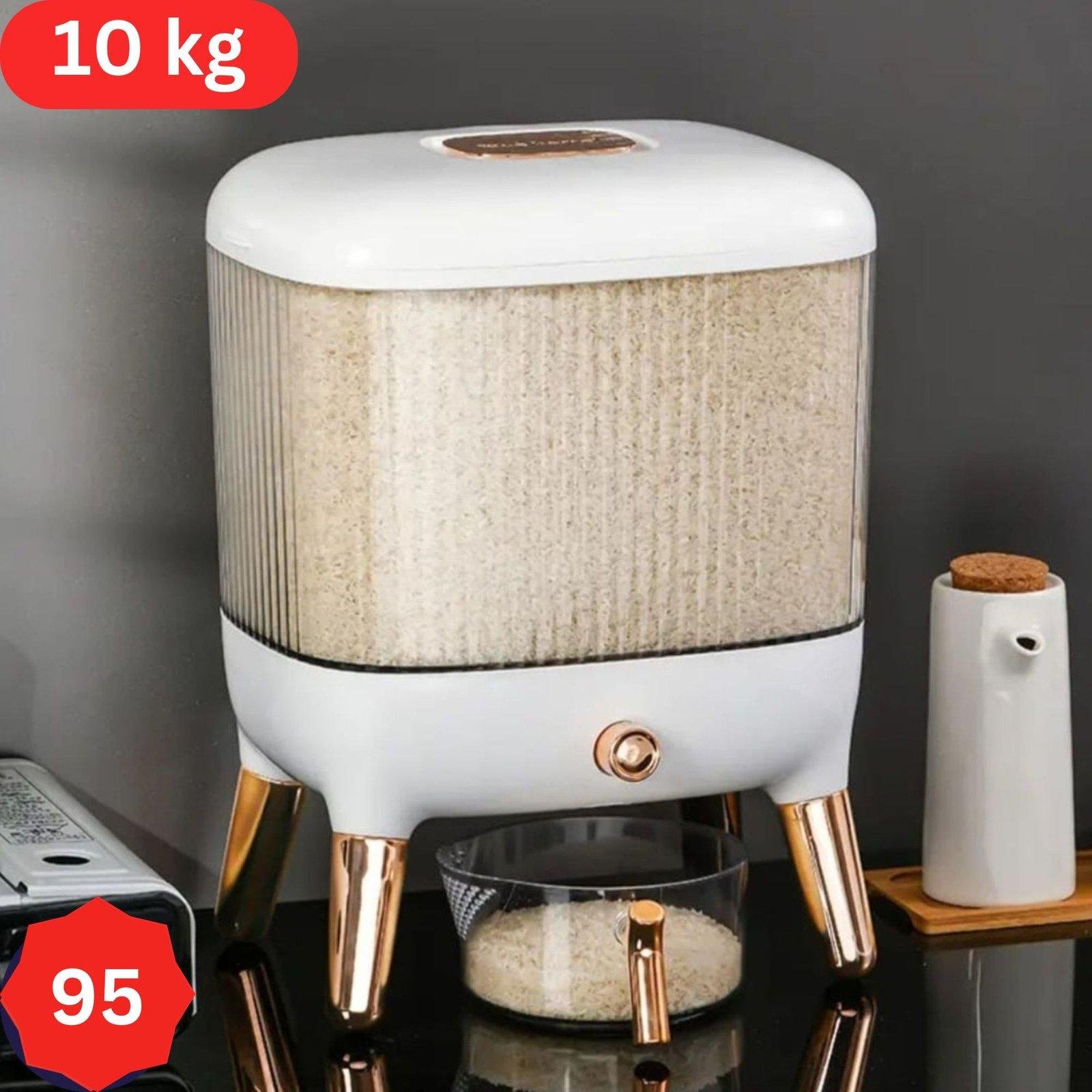 موزع الأرز الفاخر مع الكوب المعياري اجمل هدية لللأرز العادي والبسمتي والبقوليات تحافظ على الارز أو البقوليات جافة بعيدا عن الرطوبة معها كوب قياسي يسهل عليك في تحديد الكمية التي تناسبك بضغطة زر خامه اكريليك ذات جوده عاليه سعه 10 كيلو غرام