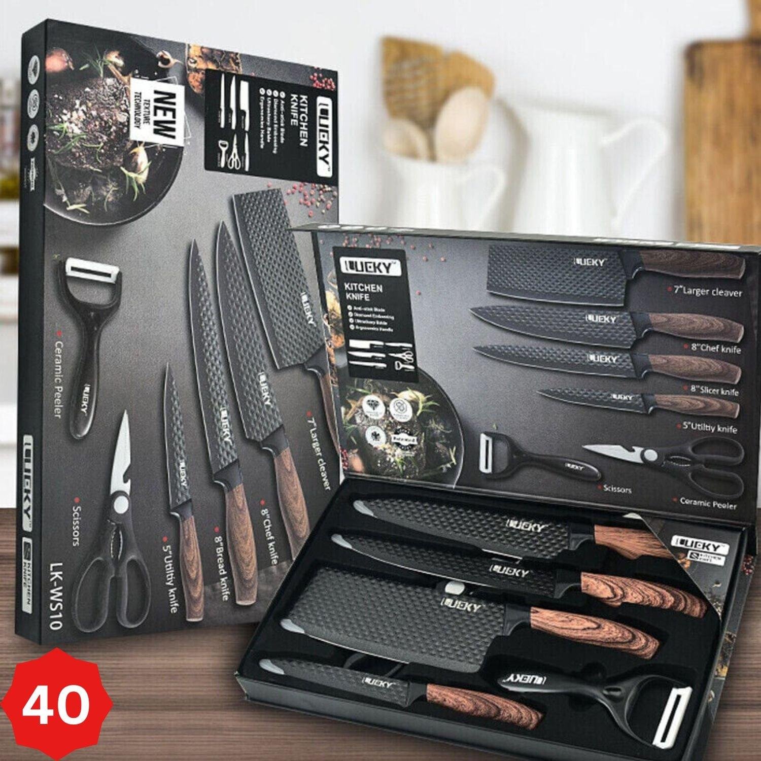 طقم سكاكين المطبخ 6 قطع🤷♂️ طقم سكاكين حادة يحتوي على أصناف متنوعة يحتوي على ٤ سكاكين مختلفة الأحجام و الأشكال و مقص للطعام و مبشرة 🥰