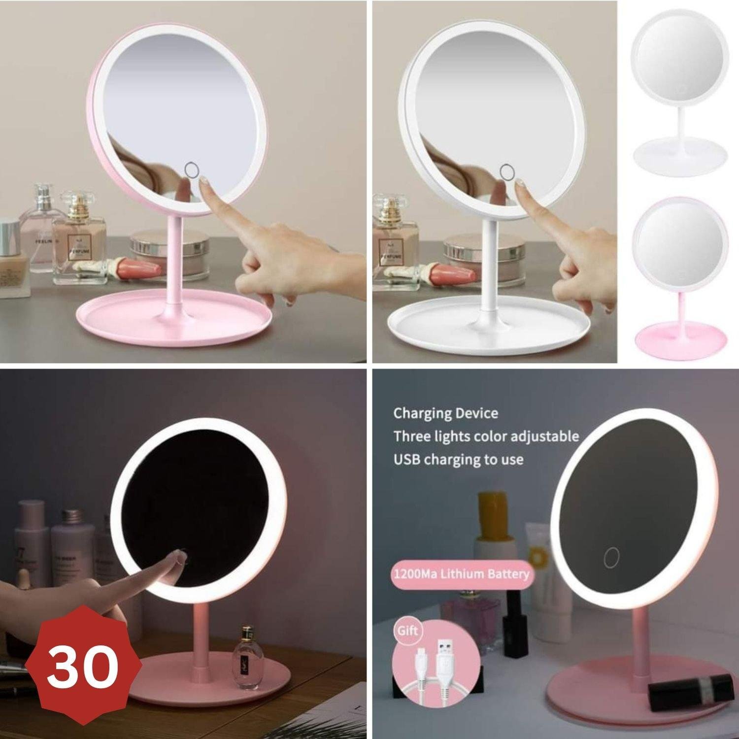 مرآه مكياج مضيئه بثلاث اضاءان محتلفة