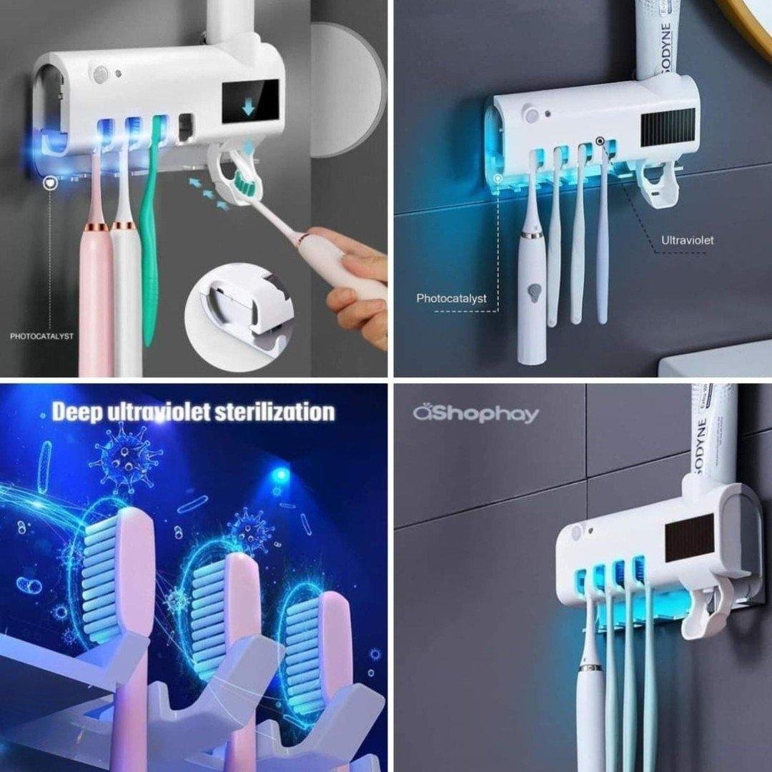 معقم لفرشاة الأسنان بالأشعة فوق البنفسجية، والذي يعمل أيضًا كموزع لمعجون الأسنان وحامل لفرش الأسنان.